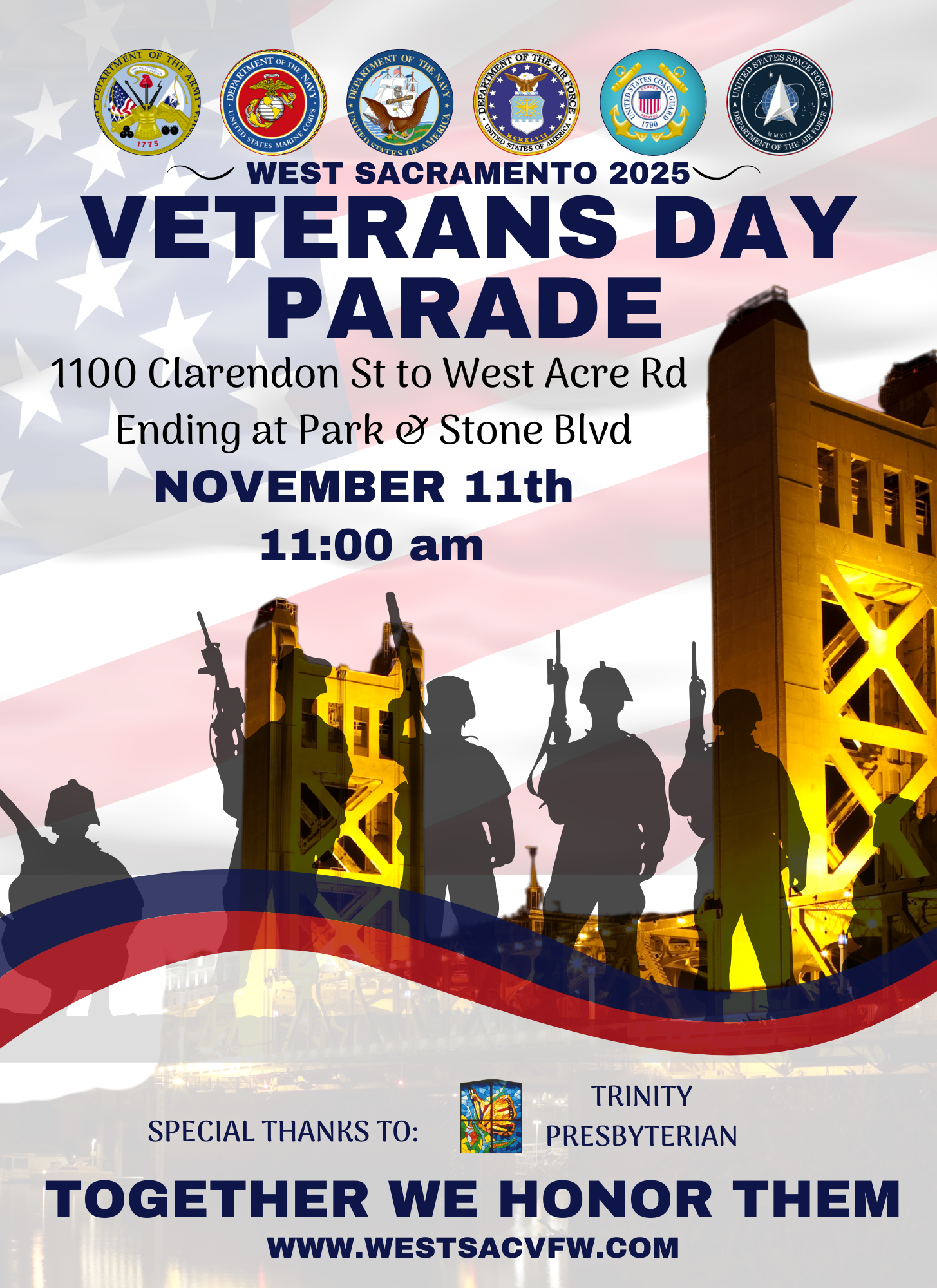 VFW Veterans Day Parade, West Sacramento. Sign up at the Oct meeting or call John. Flyer